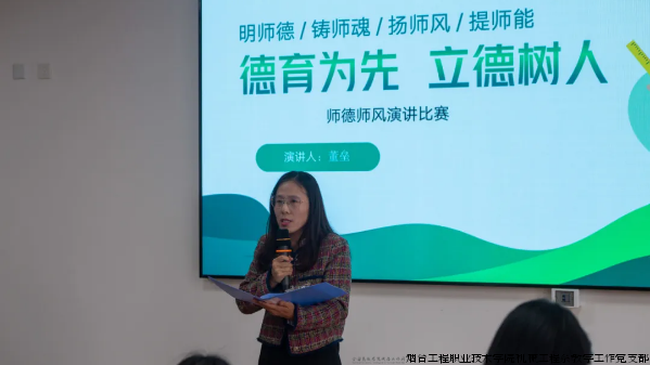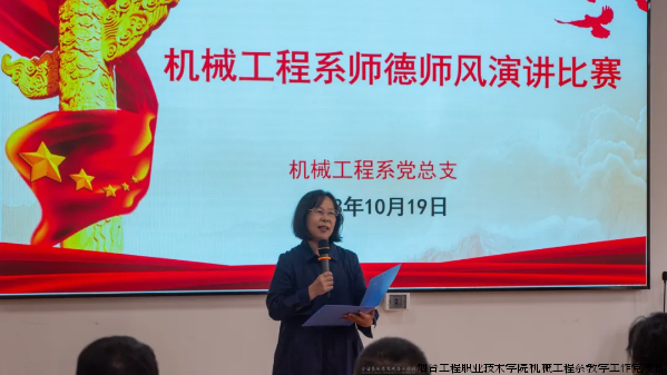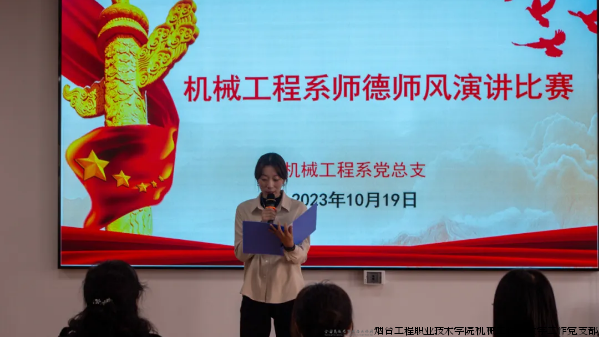 根据学院《师德师风建设工作考核办法》及《2023年加强师德师风建设工作要点》要求,10月19日下午,机械工程系于1号教学楼233教室举办主题为“三尺讲台守初心,强国有我担使命”的师德师风演讲比赛活动。系党总支副书记、副主任苏慧祎及各科室负责人到比赛活动现场参与评比。