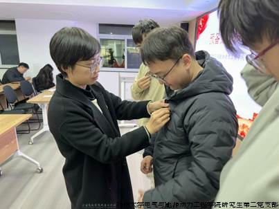 接下来,入党介绍人及支部党员对他们的综合表现进行现场评议。根据发展对象的日常行为表现、现场汇报内容、党员群众意见征集结果、政治审查以及公示反馈等情况,党支部对每位发展对象进行了全面而客观的评价。通过无记名投票的方式,一致决定接收三名同志为中共预备党员。在庄严的氛围中,支部书记宗春燕老师亲自为这三名新党员佩戴上了党徽,并寄予厚望,鼓励他们作为青年党员,要勇于担当,勤于学习,积极工作,充分发挥党员的先锋模范作用,努力成为一名优秀的共产党员。