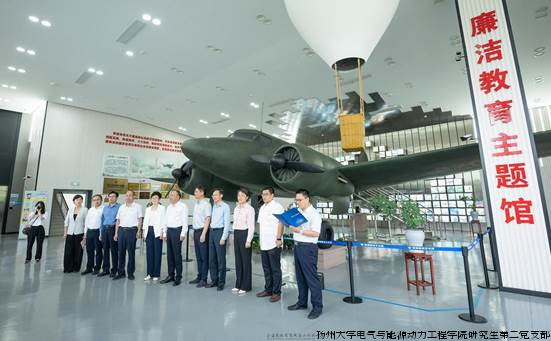 为深入推进作风建设,促进党建与事业发展深度融合,近日,研二支部联合外国语学院专业教师第一党支部、信息工程学院本科生第一党支部赴扬州航空馆开展廉洁教育主题党日活动。校党委常委、组织部部长孙鹏出席活动并讲话,校党委组织部副部长王华、组织科科长李亿,三个“全国党建工作样板支部”所属学院党委书记、副书记及师生党员代表共50 余人参加活动。