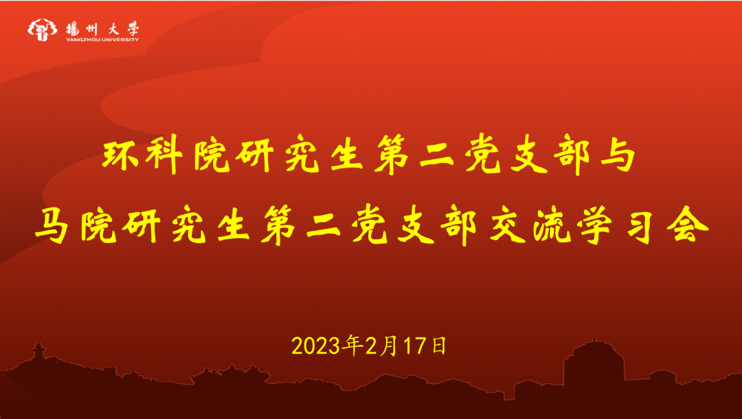 为深入学习贯彻党的二十大精神,进一步坚定理想信念、建功新时代,提高学校党建工作水平,增强党组织的凝聚力,引领带动我校学生党建工作创新发展,携手推进样板党支部党建工作提质增效。2月17日下午,扬州大学环境科学与工程学院研究生第二党支部与扬州大学马克思主义学院研究生第二党支部共同开展交流学习会。