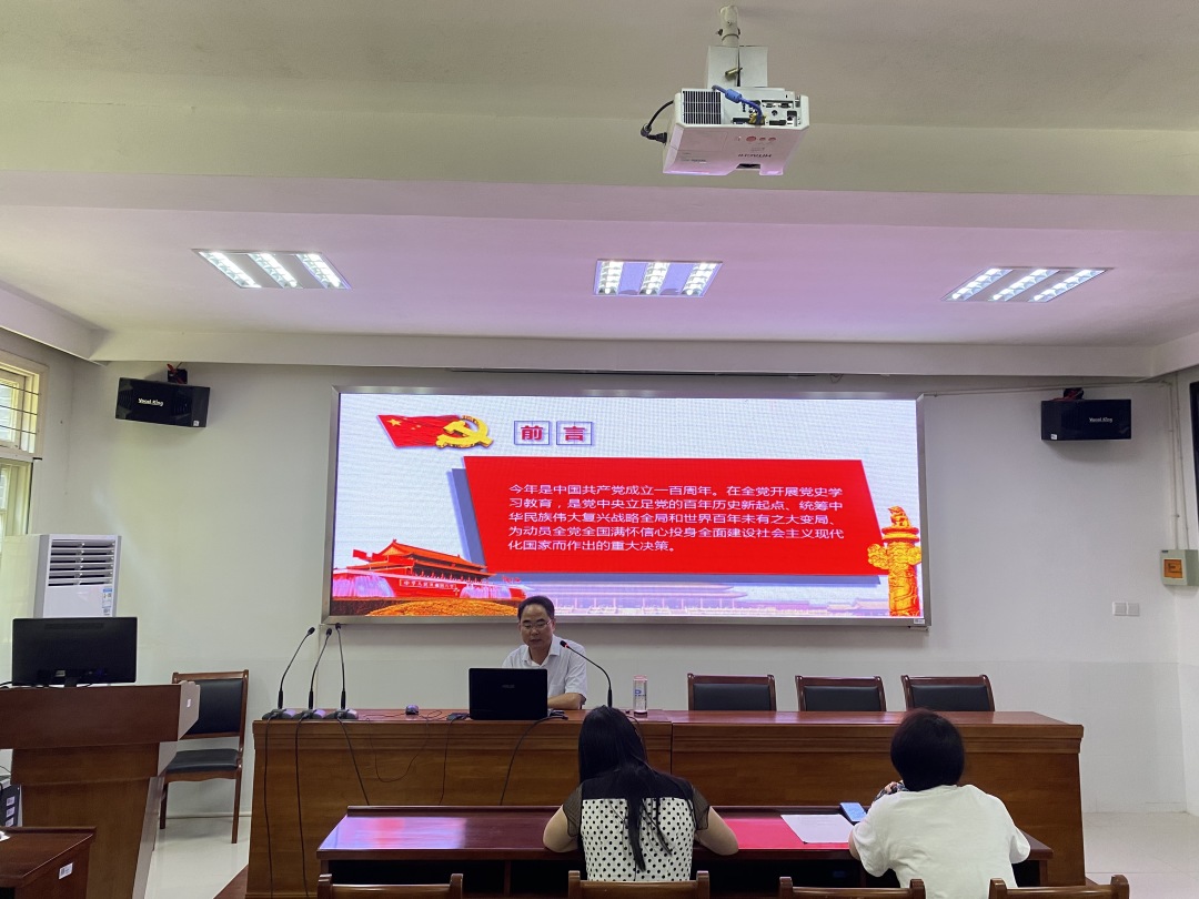 院党委副书记居再宏首先为支部党员讲授了党史学习教育专题党课。他对“四史”的内涵进行了串讲,回顾了中国共产党百年发展艰辛而光辉的历程,告诫支部党员面向历史,总结实践经验,坚持实事求是。他希望党员们能够努力推进党史教育与学习,坚持初心与使命,拥有世界眼光与中国情怀,未来投身社会主义现代化国家的建设。