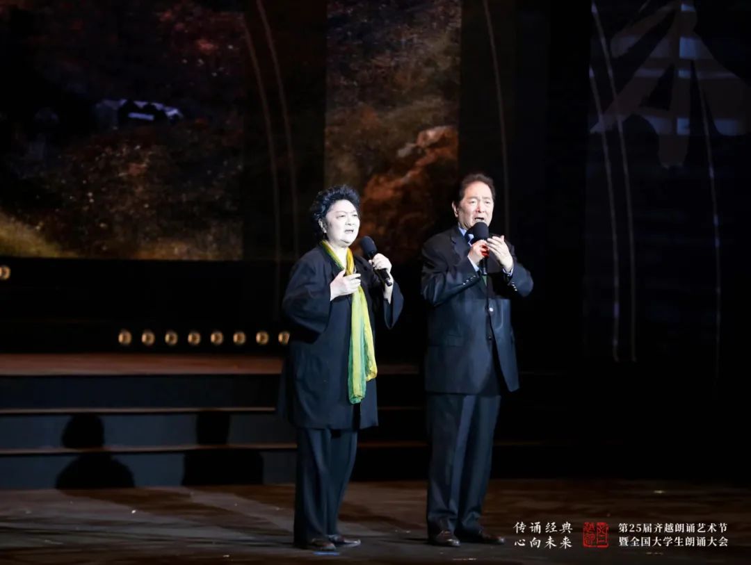 瞿弦和、张筠英作为朗诵艺术界前辈、名家,多年来一直关心助力齐越朗诵艺术节的发展,他们深情演绎了经典爱国诗歌《我爱这土地》,用有声语言抒发对祖国大地深沉的热爱,使现场观众无不动容。