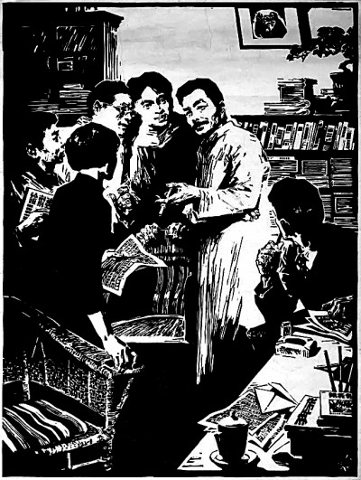 (鲁迅与青年(木刻版画) 沈尧伊/作)
