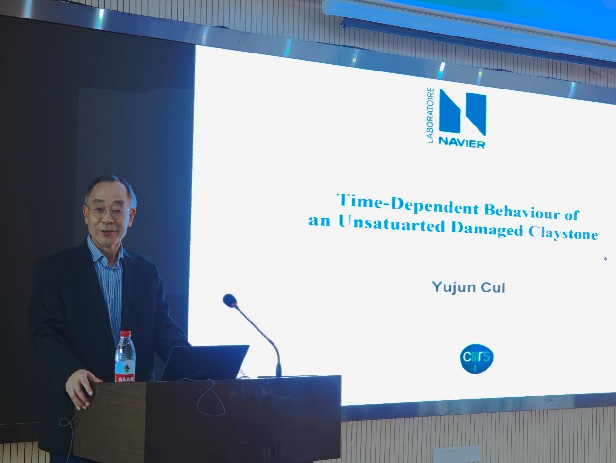 (通讯员 张峰 黄静)2023年10月31日上午,应我支部党员唐辉明教授和张峰特任教授的邀请,法国国立路桥大学Navier实验室岩土中心(CERMES)主任崔玉军教授来校访问,并作了题为“Time-dependent behaviour of unsaturated damaged claystone”的学术报告。唐辉明教授主持了报告会,李长冬教授、周佳庆特任教授、张峰特任教授、崔德山副教授、任兴伟副教授等100余名师生在现场参加了此次报告会。