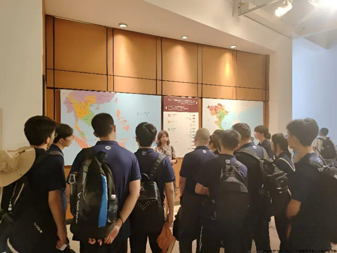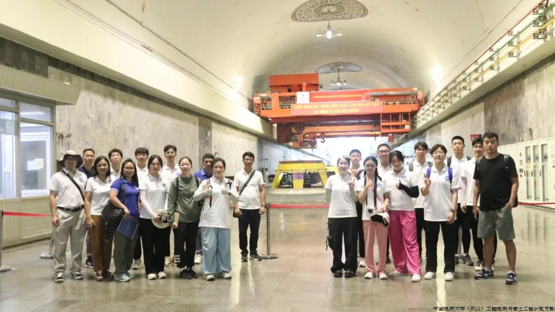 团队从各个角度纵览大坝泄洪的雄伟磅礴,学习了大坝整体的构成:大坝属于重力坝,坐落在玄武岩(岩浆岩)上,坝心为高岭土(弱透水层),外层是土石混合体,实习团队后续将对高岭土进行深入学习。该水电站第一职能为防洪,设置了十二个泄洪口,第二职能为发电,为当地提供安全和用电保障。随后实习团队便深入水电站地下工程,水电站隧道内部包括电缆系统、通风系统和消防系统,水电站的地下隧道系统,也叫能量线 ,是一个创新的设计。在发电的过程中,1号和2号机组充分利用了隧道的功能,使发电系统运行得更有效率。