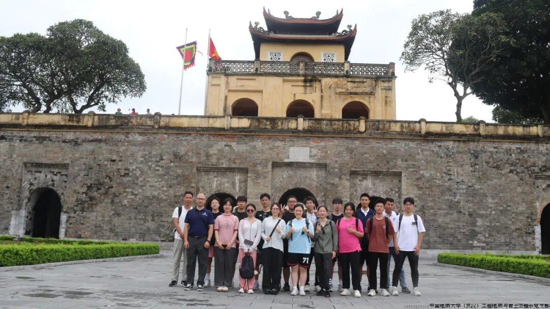 7月30日上午,实习团队从和平省返回河内,来到了河内升龙皇城,参观古城遗址。越南四代王朝李、陈、后黎、阮朝均以此都。师生们先后参观了端门、敬天殿以及古旗台遗址。它贯穿了自前升龙时期的大罗城直至现在的河内整整10个世纪的历史,是重要的世界文化遗产。在古城内,师生又参观了越南人民军在敬天殿北面的地下军事防空洞。该建筑位于地下九米深处,墙身为外墙60cm、内墙40cm厚的钢筋混凝土结构,具有极强的抗震、抗爆、抗辐射能力。为中越两国友好作出突出贡献的武元甲大将曾于此指挥越南人民的反侵略斗争。