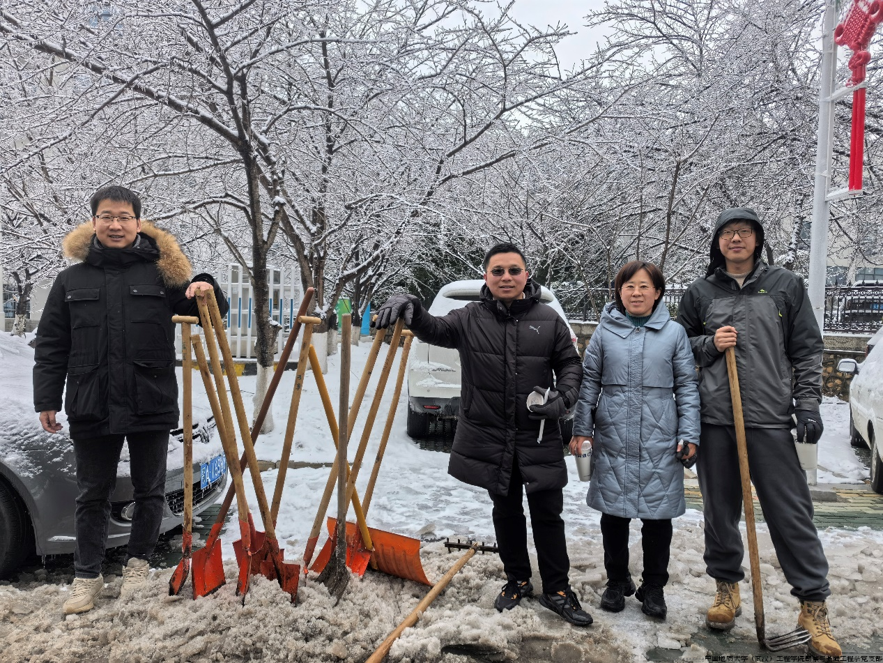 为保障师生居民生命和财产安全,我支部吴文兵、段隆臣、向龙斌、李立辰、蔡记华、黄满、李立辰等老师加入学校党委组织的校园“先锋突击队”,在寒潮中逆行,扫雪除冰、清除路障筑起一道安全屏障,成为冬日校园最温暖的守护。
