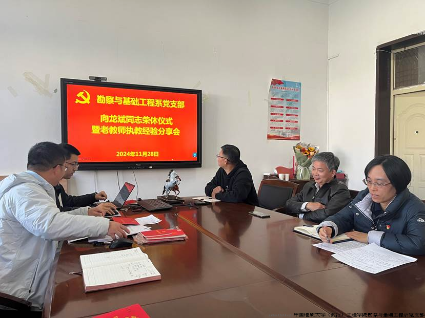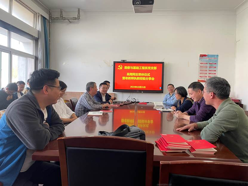 近日,工程学院勘察与基础工程系党支部先后为吴翔老师和向龙斌老师隆重举办“荣休仪式暨老教师执教经验分享会”。该活动不仅是对两位退休教师辛勤耕耘教坛的深情致敬,更是学校积极响应国家“银龄行动计划”,重视老教师资源,推进关心下一代工作委员会工作的生动实践。工程学院党委书记李红丽出席活动,仪式由勘基系党支部书记吴文兵主持。