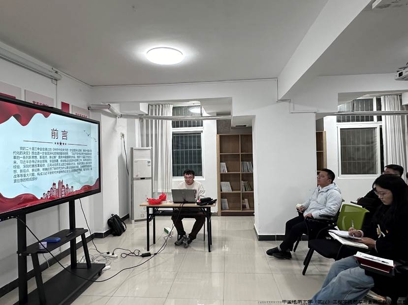 2024年11月29日晚,中国地质大学(武汉)工程学院勘察与基础工程系教师党支部与研究生第七党支部在大学生学习支持中心107室联合开展联学联建和支部结对领航活动,活动聚焦理论学习与交流,取得了良好成效。