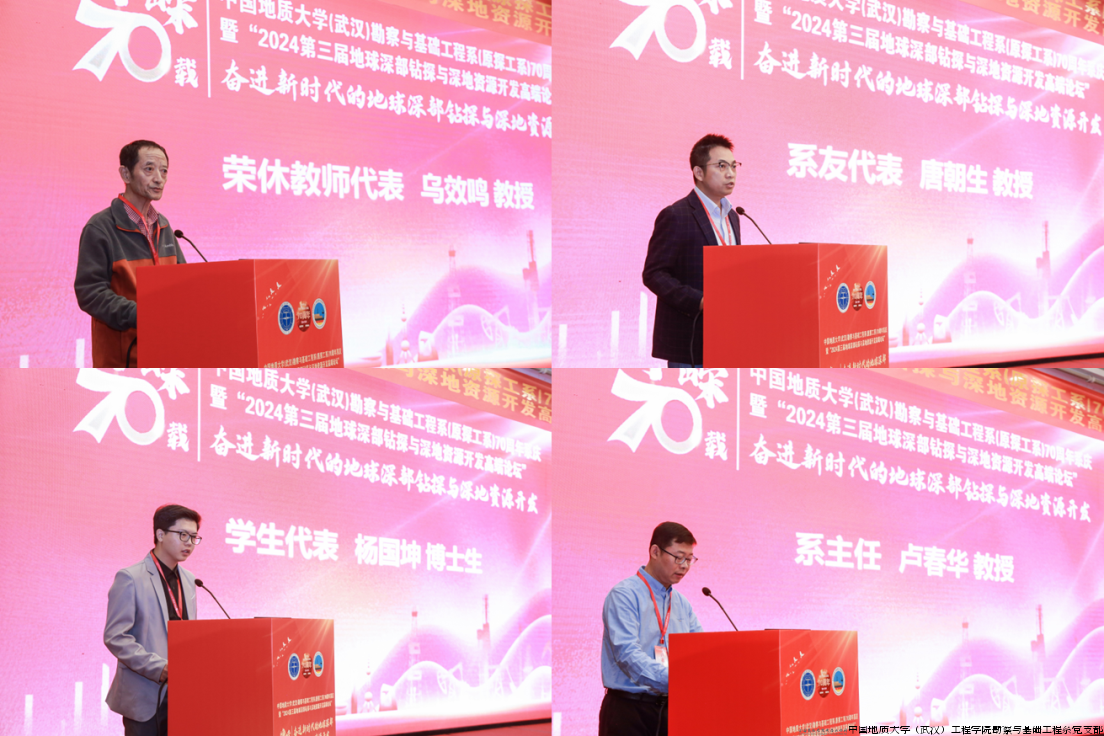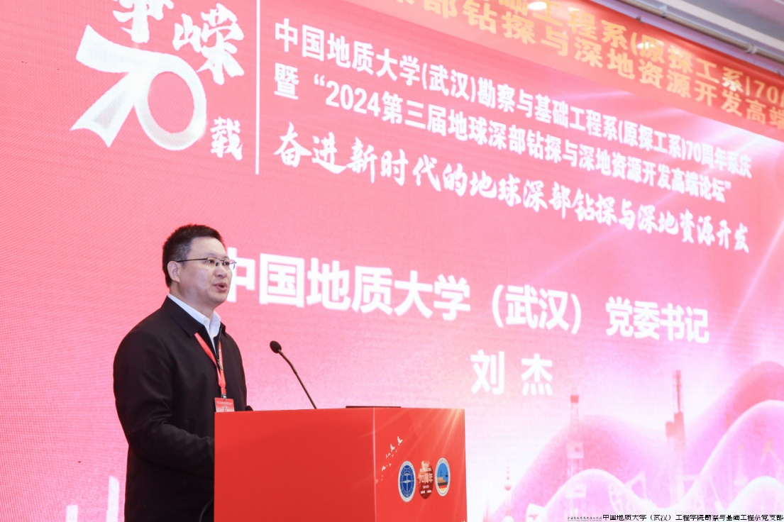 秋高气爽、金桂飘香,2024年11月1日-3日,中国地质大学(武汉)勘察与基础工程系(原探工系)70周年系庆暨“2024第三届地球深部钻探与深地资源开发高端论坛”在湖北武汉隆重召开。本次论坛以习近平新时代中国特色社会主义思想为指导,以“峥嵘七十载—奋进新时代的地球深部钻探与深地资源开发”为主题,聚焦深地、深海探测科技前沿和深层、深水、非常规领域资源战略需求,交流和总结了近年来国际国内相关领域的研究成果,力求促进地球深部钻探技术与深地资源开发跨学科、跨国界的共同协作和联合攻关,以深部钻探技术的进步推动地球深部资源的安全高效钻采开发。中国工程院院士赵文智、孙金声、杨春和,中国科学院院士倪四道,业界兄弟单位领导与同仁,我校党委书记刘杰,工程学院党委书记李红丽,以及教师、学生300余人参加了本次论坛。