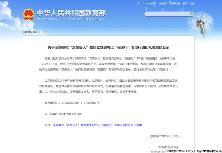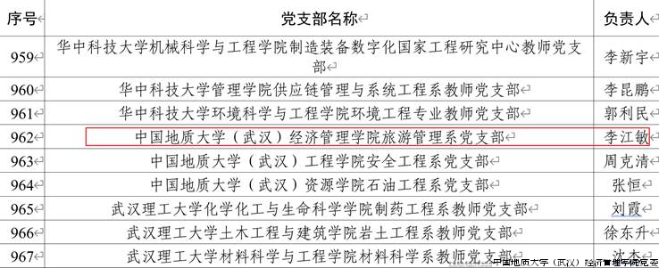 日前,教育部办公厅公布《关于全国高校“双带头人”教师党支部书记“强国行”专项行动团队名单的公示》,我院旅游管理系党支部书记李江敏作为团队负责人入选。