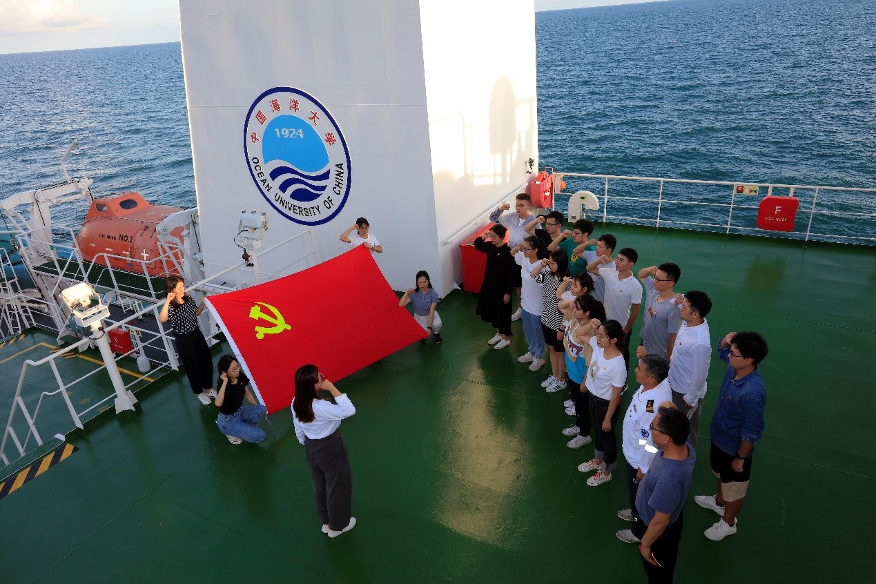 中国海洋大学三亚海洋研究院2020级硕士研究生党支部与“东方红3”船临时党支部于2021年7月10日结对开展“海上学党史,启航新征程”主题党日活动。