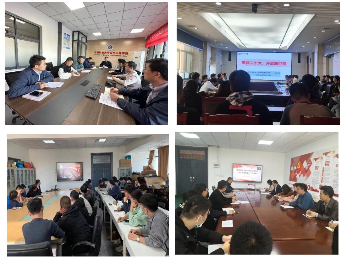 各党支部师生纷纷表示要持续深入学习贯彻党的二十大精神,以更饱满的精神状态、更昂扬的斗志投入到教学科研活动中,为党育人、为国育才,奋勇争先、勇毅前行,坚定不移听党话、跟党走,以“双一流”建设为新起点,围绕构建 “五个一流”学科建设目标,汇聚起创建“安全特色、世界一流”的高水平研究型学院的磅礴力量,推动学院事业发展再上新台阶、再创新辉煌,为加快推进能源资源特色世界一流大学建设,实现中华民族伟大复兴的中国梦作出矿大安全人新的更大贡献!