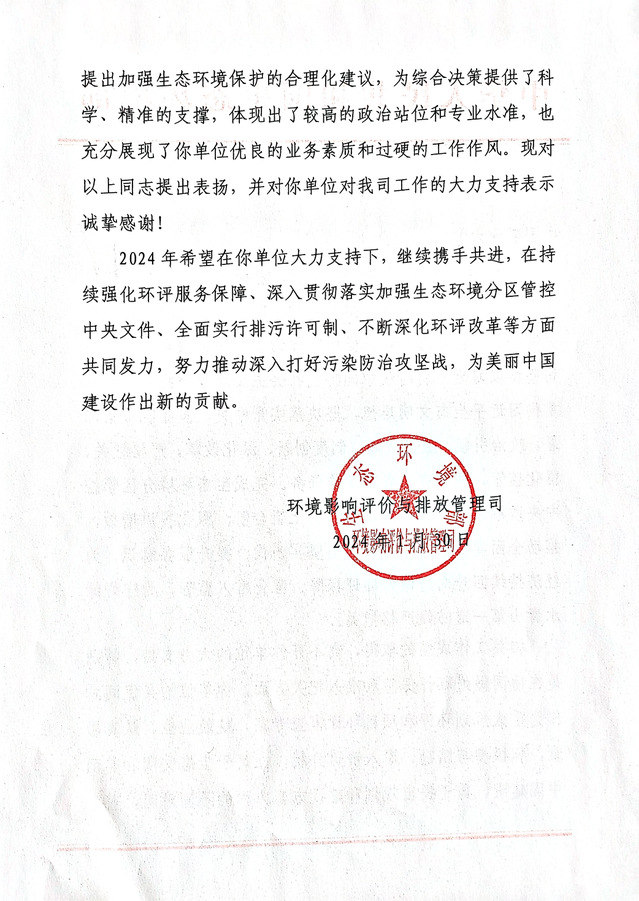 此前,生态环境部环境工程评估中心已向吴侃教授发来感谢信,感谢他为环评工作的科学决策、技术咨询、评估审核方面做出的支持与贡献。