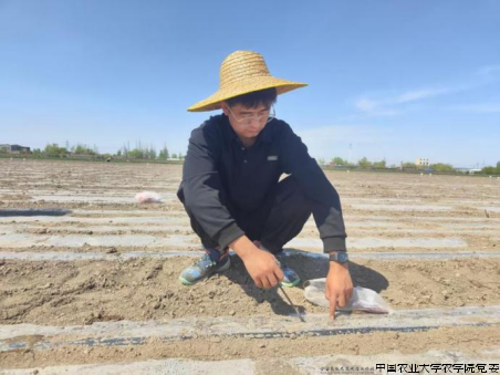 作物化控研究中心研究生第二党支部联合新疆农垦科学院棉花研究所党支部,在新疆棉花试验基地开展“校院协同抢农时”春耕播种党日活动。10余名党员顶着频发风沙和昼夜温差,全程参与机械化铺膜、试验田划线分区和精准播种作业。科研团队使用铺膜机高效完成100亩试验田的覆膜工作,并严格按照试验设计要求进行播种,确保10个试验区的处理分布科学合理。同时,党员们同步完成土壤墒情取样工作,为后续棉花品种优化研究提供可靠数据支撑。