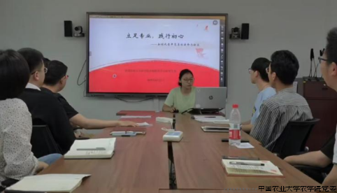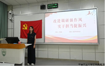 “以‘改进调查研究’为例,中央八项规定要求到基层调研要深入了解真实情况。国以农为本,我们在进行农业科研和实践调研时,要避免形式主义,切忌走马观花,需深入田间地头,深入工厂车间,与农业产业工作者面对面交流,了解他们的实际困境,促使科研成果真正能够解决农业实际问题。”——化控一党支部