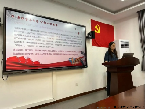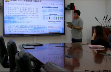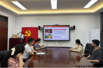 “同志们,当我们的指尖拂过试验田的麦穗,触碰的是蔡旭院士防空洞里的坚守,是戴景瑞院士十八个春节的守望,是无数农学人用一生写就的答卷。在建设农业强国的路上,我们既是接过接力棒的后浪,更是开拓新征程的先锋。让我们以强作风为犁,耕破科研的坚土;以勇担当为种,播撒振兴的希望;以善传承为光,照亮未来的田野——在三农沃土上,书写属于我们这代人的时代篇章,让青春在强国征程中绽放出最耀眼的光芒!”——作栽二党支部