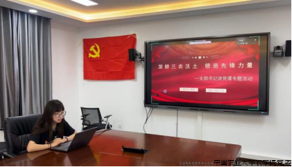 “对我们来说,初心可以是一个远大的志向,也可能是一个简单的愿望。常言道:‘志不立,天下无可成之事’。下面我想和大家分享我们支部两位同志以担当作为践行初心使命的事迹。支部20级硕士李平春同志毕业后返乡工作,在曾经的贫困村新寨村驻村两年,获当地部门表彰。支部李文杰同志常年驻扎山农济宁大豆科技小院,相关事迹获人民日报报道。”——区域一党支部