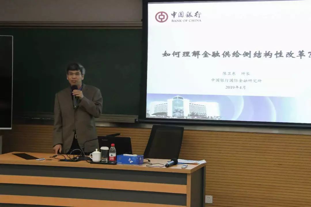 来自我院货币金融系与中国银行国际金融研究所的六名专家学者依次作了主题发言。中国银行国际金融研究所党支部书记、所长陈卫东的演讲以“金融供给侧结构性改革”为题,分别从宏观面、金融资源配置、传统金融新挑战三个角度入手对我国金融供给侧改革的现状与未来进行了深入剖析。他认为,金融供给侧结构性改革的落脚点应该是让金融体系体现出“中国特色”。他表示,新形势下我国传统金融领域面对着绿色金融等新兴领域布局不足、物理网点收缩消亡、金融品种单一、监管滞后、金融机构日渐式微、信息金融机构试错成本高等六大挑战。为了破解这些发展痼疾,要以提高金融效率为核心,紧跟科技发展潮流,大力促进直接融资模式发展,在提高金融服务精确性的同时不断完善监管体系。最后,他表达了对金融业态健康稳定发展的期许。