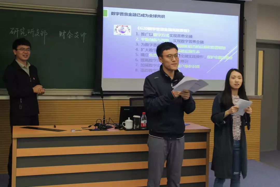 党建知识竞赛环节在中国银行国际金融研究所博士后原晓惠与财政金融学院2017级博士生贾翔夫的主持下顺利开展,支部成员积极参与问答,现场气氛热烈,党员及入党积极分子政治素养坚定、理论功底扎实。会后,全体与会人员合影留念。