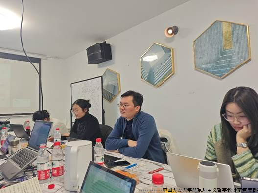 在党建会议室,师生围绕“马克思的人口理论”“马克思流通时间理论”“马克思对施蒂纳的批判”“马克思市民社会理论”“马克思社会有机体概念”“马克思与黑格尔关系”“恩格斯哲学基本问题”“革命家罗莎·卢森堡”“金融资本的历史演变与当代形态”等主题开展学术汇报和学术评议,分享了作为马克思主义哲学研究者“用学术讲政治”的经验心得。与会师生纷纷表示,在未来的学术研究中,必须坚持正确的政治方向,树立以人民为中心的研究导向,强化学术的自主性和原创性,为中国特色哲学社会科学“三大体系”建设贡献智慧和力量。