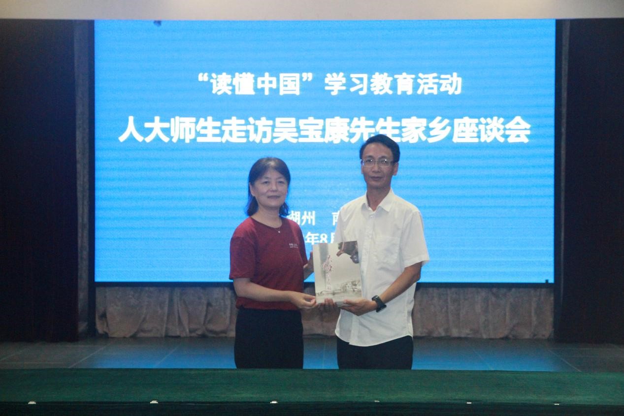 活动中,信息资源管理学院与南浔区档案馆召开了座谈会,举行书籍互赠仪式,师生代表和市区档案部门领导围绕此次“读懂中国”活动进行了热烈而充分的交流。区政府咨询委秘书长、区档案馆第一任馆长邵枫介绍了自2015年12月双方建立友好合作关系的渊源与发展,对新时期健全密切而长效的合作机制提出建设性意见。徐拥军教授等教师代表纷纷介绍了学院专业发展方向、档案价值开发、档案信息技术运用于城乡建设案例等情况,对南浔档案部门提出的基层档案工作“瓶颈”问题给予了相关意见建议。