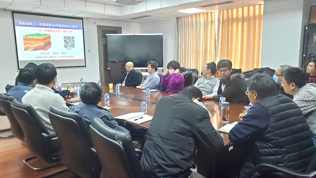 会上,毛教授紧紧围绕国家级一流课程建设与申报的主题,阐述了一流大学、一流专业与一流课程之间的关系,重点解读了一流专业与一流课程评审标准与申报要点,以《地震勘探原理》国家级一流本科课程团队为例,深入浅出的谈了一些自己的体会与思考。