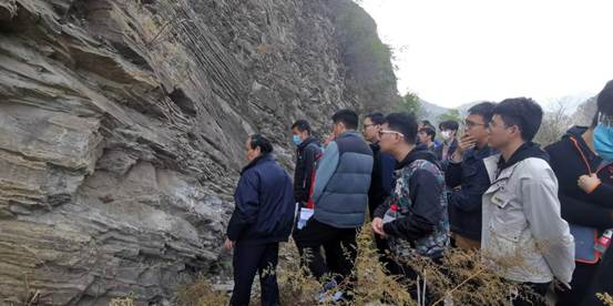 上午,野外地质实践主要考察了京西地区下苇甸寒武系、奥陶系海相地层构造和沉积特征。在王贵文、吴胜和、高岗老师的带领下,师生们对该地区的断层、褶皱、不整合等各种构造现象以及生物礁、叠层石、缝合线、鲕粒等沉积构造现象和成因进行了细致的观察和热烈的讨论。同学们纷纷表示受益匪浅,深感“纸上得来终觉浅、绝知此事要躬行”。