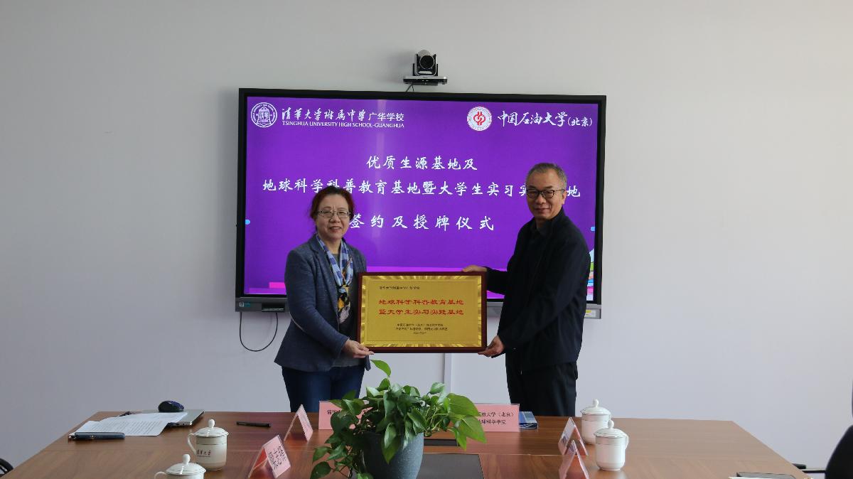 此次“优质生源基地”和“地球科学科普教育基地曁大学生社会实践基地”的建立,将会加强中国石油大学(北京)与清华大学附属中学广华学校之间的交流合作。