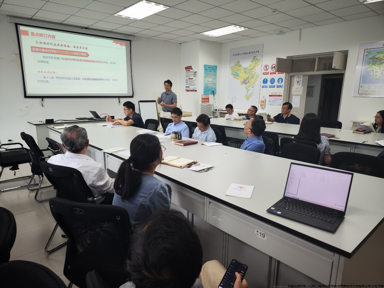 首先,全体参会教职工开展政治理论学习。李庆对“新修订的《中国石油大学(北京)章程》”进行了领学。带领与会教师充分认识了大学章程的重要性,介绍了最新修订版章程的重点修订内容,并提出学校对章程的学习要求——章程是学校的“根本大法”,全体教职工要认真学习贯彻章程,以章程为指导开展教育教学与各项管理工作。