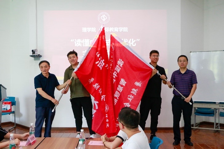 研学结束后,张广清、岳长涛共同为中外联合社会实践队授予旗帜并合影留念。