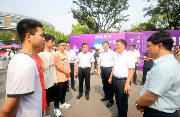 8月31日,学校党委书记王勇、党委副书记马国顺一行,到我院迎新点视察迎新工作,了解新生报到情况,指导迎新工作。学院院长蔡宝平、党委书记李海林来到宿舍,与远道而来的家长学生亲切交流,传递着学院对新生的关怀与期望。“大学是人生的新起点,愿你们能追求兴趣,勇于探索,积极学习,全面发展。” 蔡宝平对新生亲切嘱托。他鼓励新生珍惜学习机会,参与实践活动,培养创新能力,同时也关注个人成长和团队合作,以积极态度迎接挑战,努力成为有理想、有担当的新时代青年。