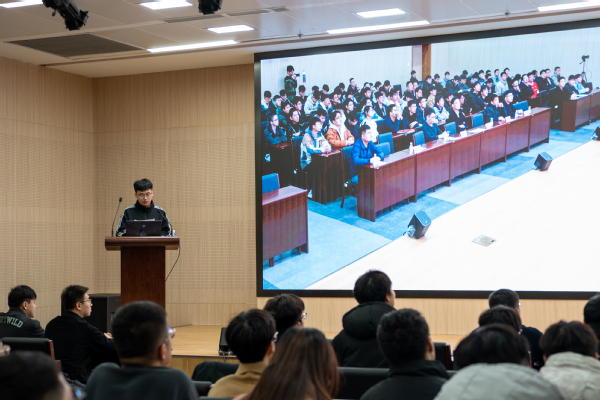 研究生高端装备制造学生党支部书记孟凡博进行工作分享。他从党支部班子建设、党支部工作运行、党员发展及教育、党支部组织生活和党支部作用发挥五个方面进行汇报。高端装备制造党支部不仅坚持编织党建工作“经线”,执行党的政策规定,而且不断拓展党建活动“纬线”,落实重大工作安排,在扎实做好党员发展工作的同时积极加强党员教育工作。支部还积极开展多元化党建活动,激发成员学习热情,组织了包括主题党日、专题讲座、参观学习、红色观影、集体运动等多样化的活动。