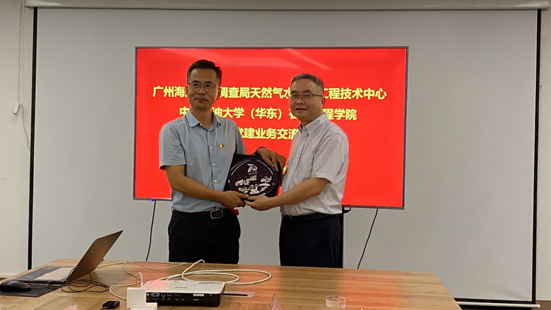 侯健代表学院感谢广州海洋地质调查局长期以来对学院发展的支持,希望双方在党建联建、科研创新、学科专业、人才培养等方面深入开展联合共建,构建党建思政学科专业育人综合体。通过组建地质、钻井、完井、开发的多学科大团队助力水合物试采大工程,定期开展党建与业务交流、共同申报科技攻关项目,结合重大工程与科研项目联合培养研究生,围绕国家战略和企业需求,切实提高人才培养质量。侯健向广州海洋地质调查局赠送了学校70周年校庆纪念品。