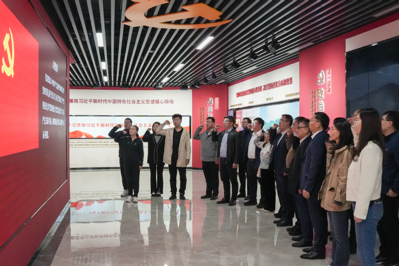 5G高新视频党建教育展厅将理论学习与互动体验相结合,生动展示了“政治统领、理论武装、堪当重任、组织建设、正风肃纪、反腐攻坚、自我革命、党建引领”八个主题的内容。通过卫星遥感、可视化技术、幻影场景展现“云上长征路”“天坑开路人”,沉浸式多功能厅采用5G+16K精细超高清画面和沉浸双曲碗幕共同打造裸眼3D视效,重现革命长征路。跨越时空、身临其境的学习体验让大家耳目一新,更加深刻领会党中央关于党的建设的重要思想。最后,全体党员教师面对党旗,重温入党誓词,重忆入党初心。