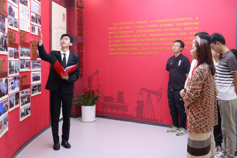 石油工程学院“向党心·石油魂”党建教育基地位于学校工科实验楼B座三楼,于2022年11月落成启用。启用以来,已接待多个党团组织到基地参观学习,多次开展重温入党誓词、教授微党课、院史小课堂、小合唱等特色主题党日,现已累计接待参观人数超过2000人。2023年7月,党建教育基地入选“青岛西海岸新区‘建功新时代’主题党日特色阵地”。