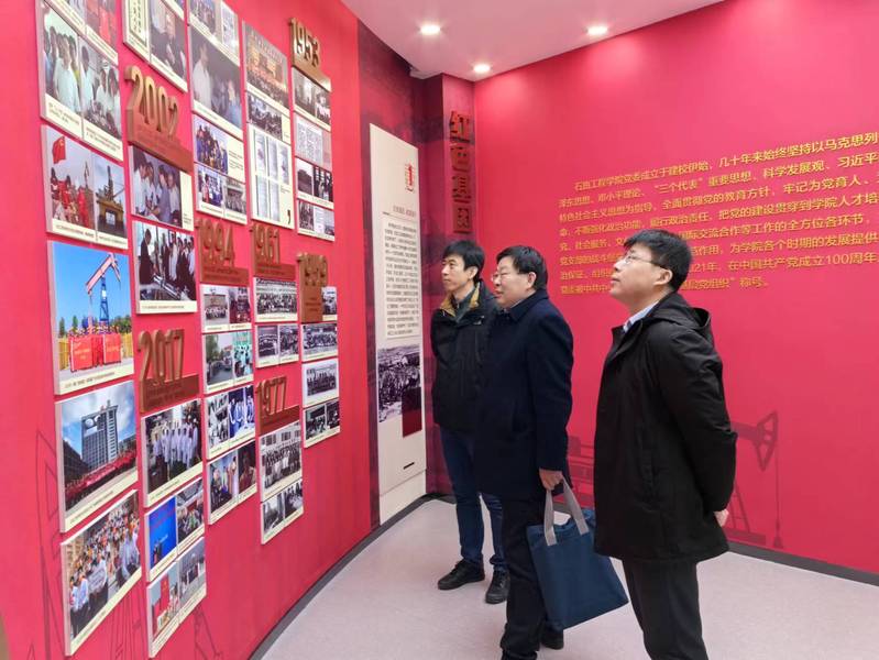 石油工程学院“向党心·石油魂”党建教育基地位于学校工科实验楼B座三楼,于2022年11月落成启用。启用以来,已接待多个党团组织到基地参观学习,多次开展重温入党誓词、教授微党课、院史小课堂、小合唱等特色主题党日,现已累计接待参观人数超过2500人。2023年7月,党建教育基地入选“青岛西海岸新区‘建功新时代’主题党日特色阵地”。下一步,学院将进一步加强“建功新时代”主题党日特色阵地的维护和管理,做好讲解员队伍建设,强化资源共建共享,充分发挥组织育人、文化育人和资政育人的合力,将党建教育基地建设成为服务青岛、融入地方的桥梁和纽带。