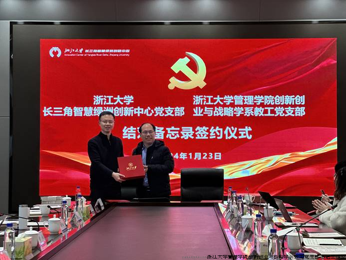 2024年1月23日-24日,“全国党建样板支部”、第二批高校“双带头人”教师党支部书记工作室建设单位浙江大学管理学院创新创业与战略学系教工支部在支部书记黄灿教授带领下赴嘉善参访浙江大学长三角智慧绿洲创新中心,举行“服务长三角一体化国家战略,促进学科会聚和高质量发展”主题党日活动。