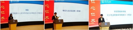 在预备会议中,大会听取了医学院第十六次学生代表大会筹委会工作报告,审议通过了大会主席团成员名单、大会秘书长名单、大会会议议程、资格审查组关于代表资格审查的报告。