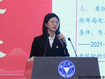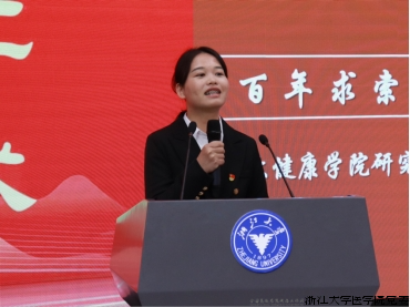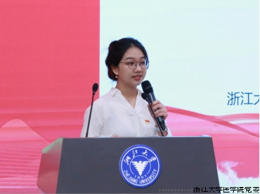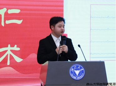 浙江大学医学院临床医学八年制本科生党支部张莹莹以“笔跨时空,记赓薪火”为题,从三代笔记切入浙大精神传承。她指出,医学生的笔记不仅是知识载体,更凝聚着“求是精神”:竺可桢校长“不计利害,只问是非”的治学理念,巴德年院士兼具科学严谨与人文关怀的医学思想,激励着代代学子奋楫笃行。新时代青年学子以笔为舟,在知识海洋中深耕——有人钻研数学与医学交叉领域,紧跟大数据浪潮;有人投身“互联网+青年扶贫”,奔赴云南支教,躬身基层医疗与教育。每一份工整的笔记、每一次实践探索,都是对求是精神的践行,对党的二十大立德树人要求的响应。她号召青年同学以手写心、以行践知,在健康中国建设中接力奋斗,续写新时代的青春答卷。