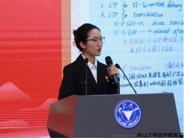 浙江大学医学院公共卫生系大数据健康科学系研究生党支部蔡紫红以“时代之问,浙医担当”为题,回溯百年浙医精神传承。她从“仁心济世,实干兴医”的初心讲起,到讲述浙医人在医学领域的卓越成就的先进案例:实施全国首例脊髓神经接口植入手术、创新白血病治疗方案、开展首个三代肿瘤病毒治疗肝癌项目,再到人工智能医疗时代率先探索的走在前列,将前沿科技转化为守护生命的力量。她号召青年医学党员们传承敢为人先、精益求精的精神,以坚定信念、务实作风与创新锐气,在健康中国建设征程中书写新的时代答卷。