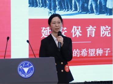 浙江大学医学院儿科学院第一党支部郑晨以“守护童心,守望未来”为题,回溯延安保育院红色守护历史,展现“以童为本”精神传承。她指出新时代儿童健康需求向全面发展延伸,儿科学院依托70年积淀深耕技术与筛查,青年学子通过捐献造血干细胞、开展校园科普及山区线上科普等行动践行使命。她号召广大青年学子传承红色基因,汇聚青春力量,续写儿童健康守护担当。