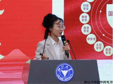 浙大一院研究生第三党支部曾轶凡以“践行青春使命,共筑国家安全防线”为题,阐释新时代总体国家安全观内涵,聚焦生物安全领域。她回溯我国从消灭血吸虫病到抗击新冠的公共卫生斗争史,以浙大医学院首任院长王季午教授在20世纪50年代投身肺吸虫病防治、提出有效治疗策略并重视医学教育为例,展现浙医人守护生物安全的担当。新时代浙医人在抗疫中冲锋临床一线、攻坚科研,同时以革命精神铸魂育人。面对新发传染病、实验室安全等挑战,她号召青年学子夯实专业基础、增强生物安全意识,通过健康科普、医疗扶贫等行动,传承爱国主义精神,共筑国家安全防线。