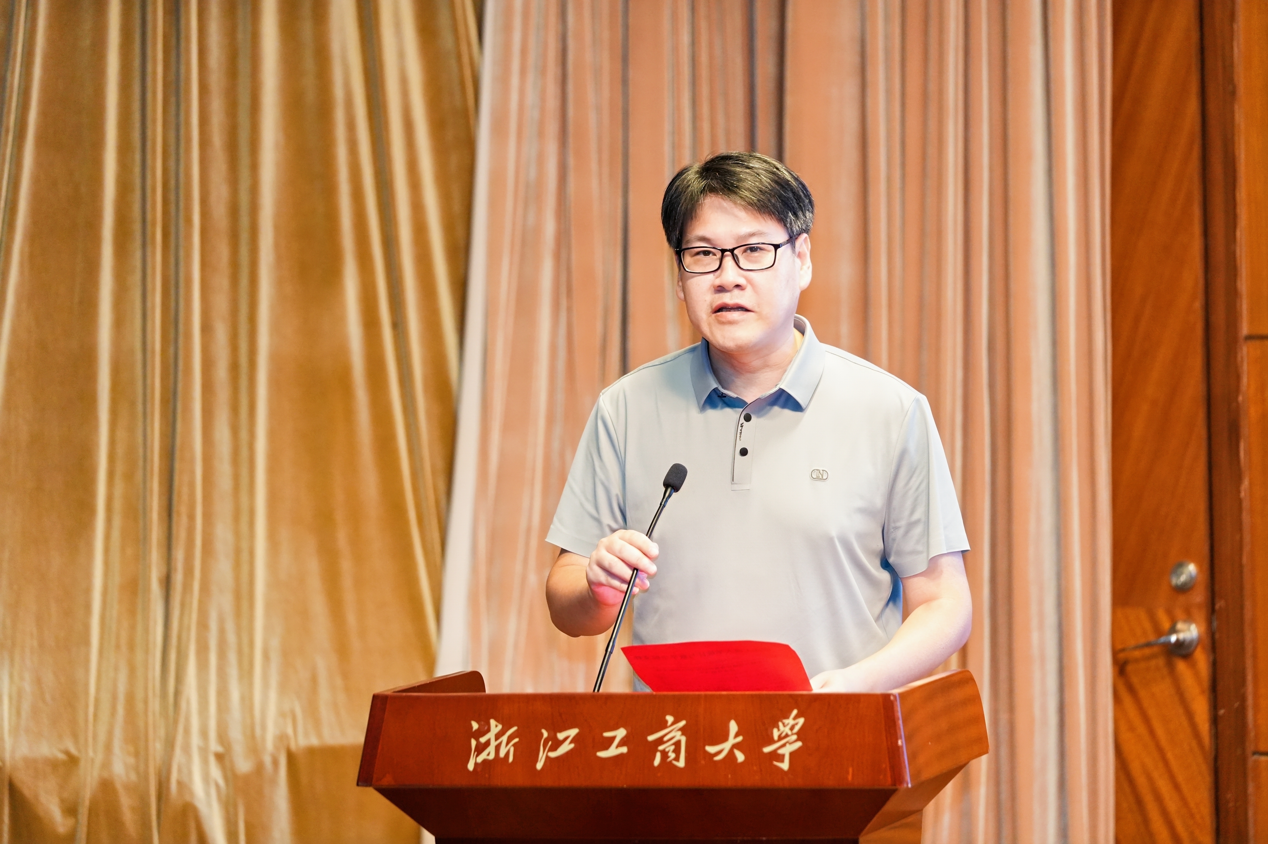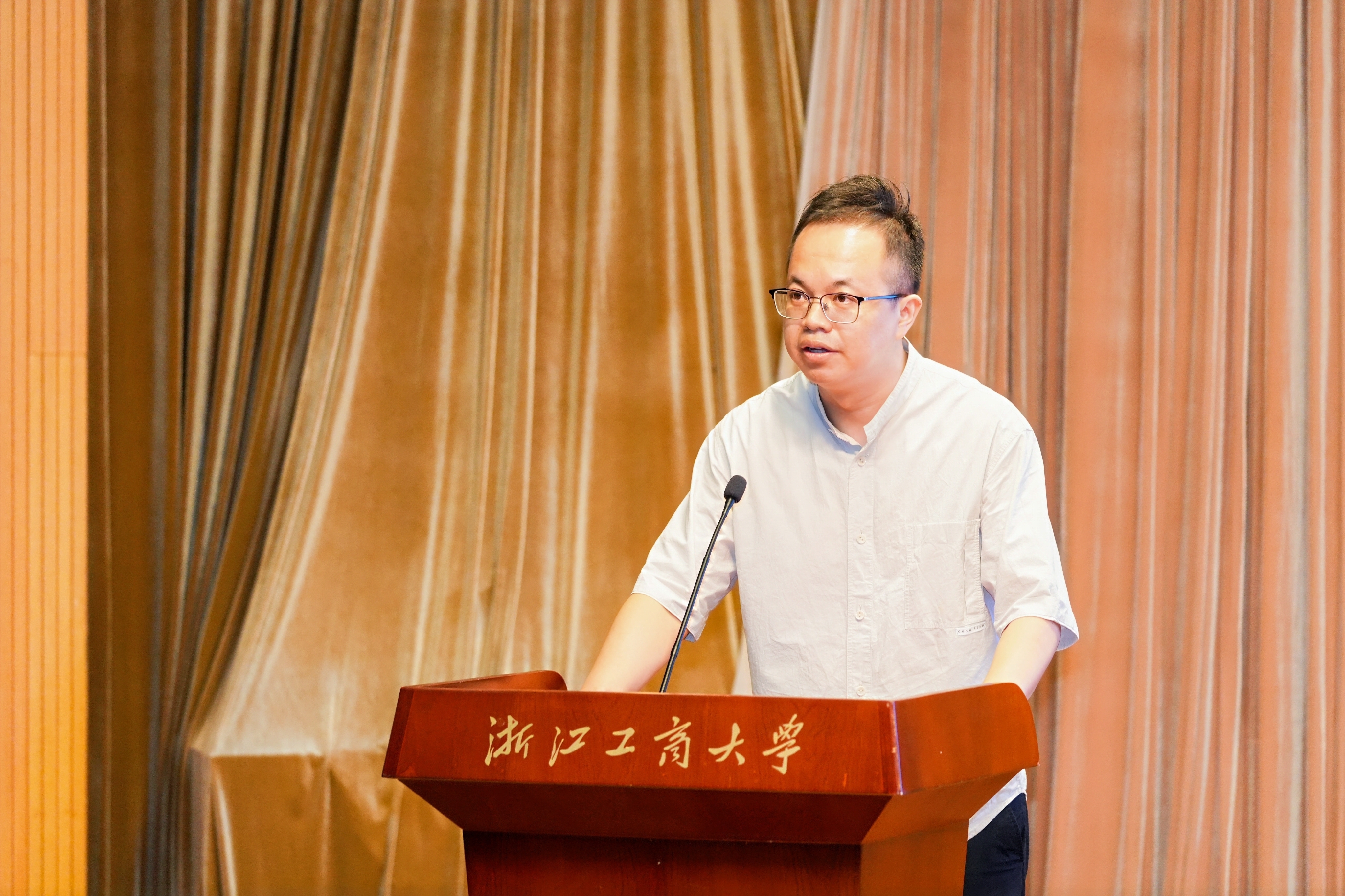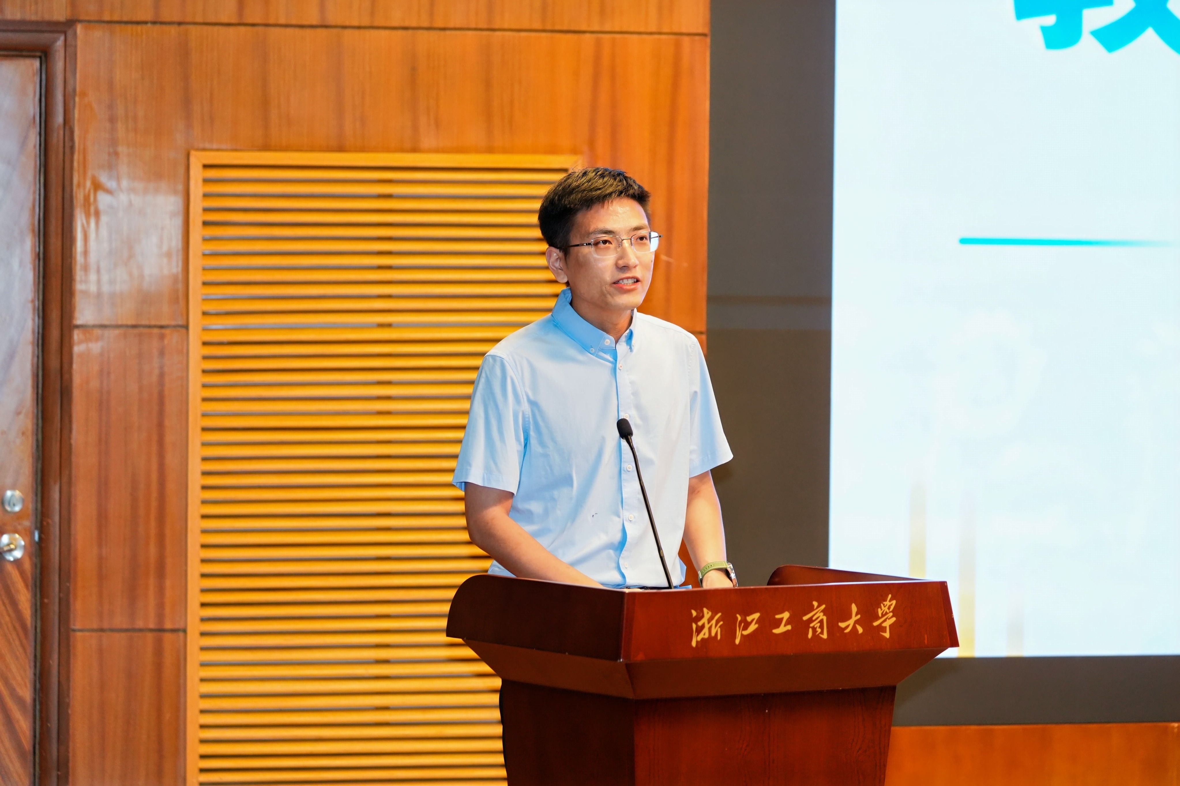 朱贺老师代表全体教师对各位新生表示欢迎,他从学生角度出发,结合自己求学和任教以来的经历,予以新生三点希望。跬步千里,厚积薄发!基础学习的重要性毋庸置疑,学生当珍惜学习机会,打好知识基础。自主自律,自立自由!学生当为自己的选择负责,保持激情和热爱;学会自主学习、自我激励,保持自律,要有所热爱、有所坚持也要有所畏惧。保持激情,保持热爱!成长的必要条件,是保持对学习和生活的激情和热爱。学生当不断追求卓越,点燃激情,去学习,去热爱,去生活。他希望大家不负时代、不负韶华,在最美好的年华,锤炼过硬本领、勇担强国使命,奋力书写青春篇章!