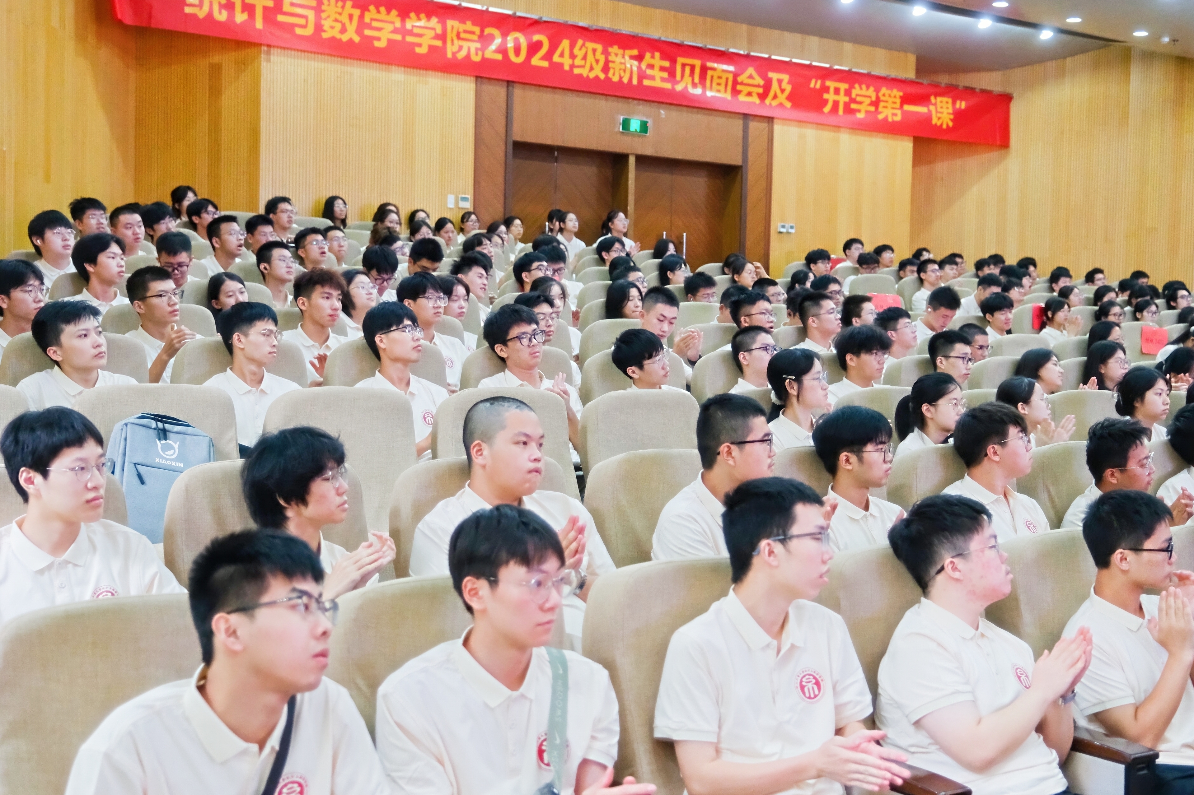 院长程开明代表学院全体师生对2024级本科新生的到来表示热烈欢迎。他介绍了学院办学历史、学科特色、人才队伍建设等情况,勉励同学们自我探索,勇于向前。他强调,要厚植家国情怀,做心系国家的统数人。新时代的中国青年挺膺担当、刚健有为,将个人奋斗融入民族复兴的时代洪流中。心系“国之大者”,未来的路才能走得更高更远。要涵养进取品格,做有真才实学的统数人。不畏艰辛,不虚度时光,掌握一些真知识真本事,注重日常积累,保持进取品格,秉持科学精神,掌握真才实学。要躬身社会实践,做扎根中国大地的统数人。躬身社会实践,注重知行合一,通过实践锤炼真本领。行中求知,敢字为先、干字当头,在经风雨、见世面中磨炼真本事,在做好每一件小事、完成每一项任务中实现自我成长。统计和数学不仅仅是理解和分析数据的工具,更是探索未知、解决难题、创新思考的引擎。最后,他衷心祝愿新同学们在未来的四年大学里取得优异的成绩,梦想成真!