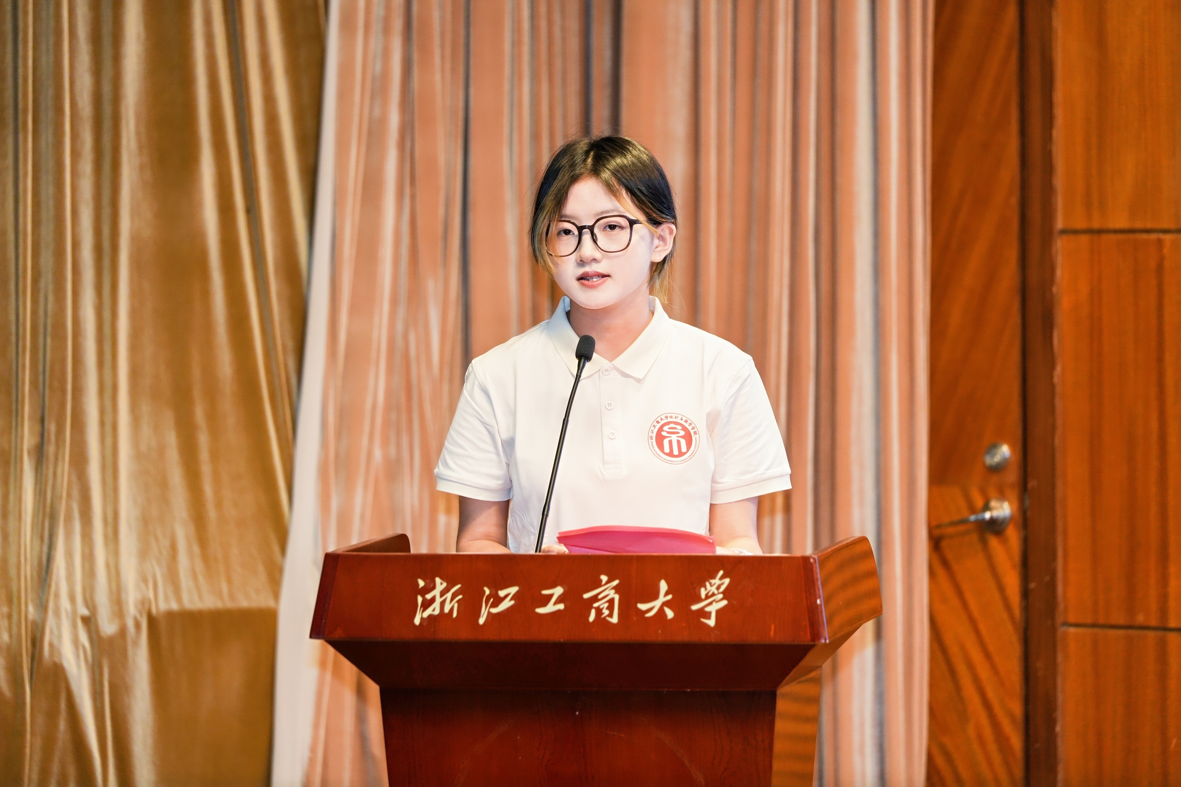 来自经统创新班的新生代表郑知欣以一句“新故相推,日生不滞”开讲,饱含深情地向我们分享了她对大学生活的憧憬与期待。作为新生,要不断挑战自己,超越自己,以远大理想不断提升自我;要为党和国家事业发展贡献青春力量,展现青春担当;要追随前辈的步伐,探索更广阔的天地,去找寻更好的自己。“追风赶月莫停留,平芜尽处是春山。”正值青春,奋斗不止,站在新的起点,她祝愿全体新生都能以滚滚钱江潮般的气势,开拓前行!