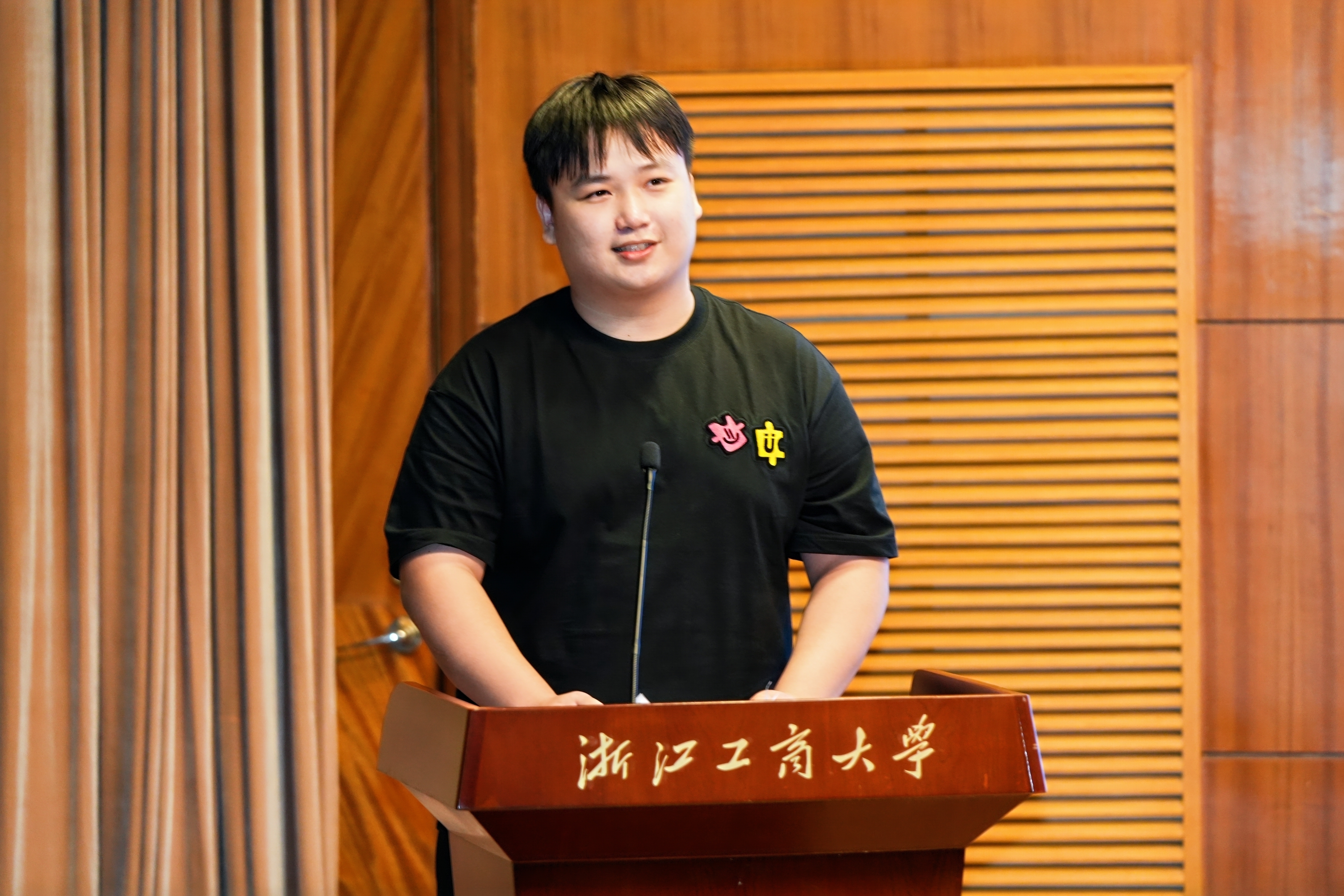 应统2101班余成耀作为老生代表,围绕自己的亲身经历,向新生们分享了三点感悟。一是树立求是精神,养成思考习惯。不断思考和追求知识,以纯粹的状态去探索真理。求是精神不仅限于学习,还包括对人生规划和是非对错的独立思考。二是坚持日新自强,敢于向最前沿进军。面对来自世界的挑战,我们的底气一定来源于最前沿进军的经历,一定来源于日新自强的拼搏精神。三是勇于突破边界,闯出多元人生。在多元化的经历中,可以结识不同领域中表现卓越的同龄人,评价标准从不仅仅是分数。他强调,怎么上大学,比上什么大学更重要,并希望新生们能够在奋力建设双一流高校的道路上贡献青春力量。