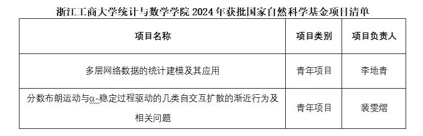 近年来,浙江工商大学统计与数学学院高度重视国家级科研项目工作,依托登峰学科建设高地,持续加强对高层次人才的引进与培育,健全高层次科研成果培育与激励机制,持续提升师生科研能力,为服务国家重大战略需求和经济社会发展作出新的更大贡献。