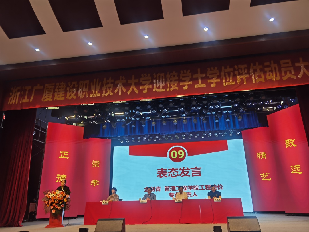 管理工程学院工程造价党支部书记金剑青作为本科专业工程造价专业负责人进行表态发言。