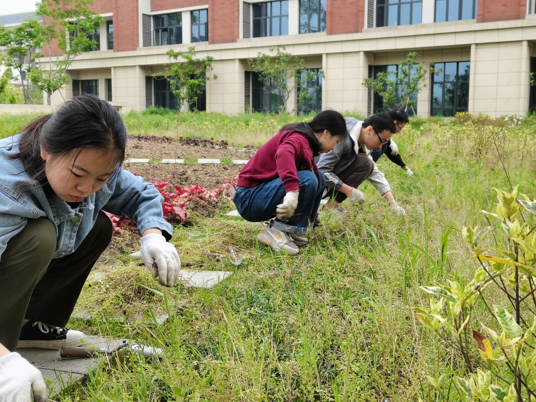 学党史也要做到“学史力行”,为群众办实事,解决群众困难,支部党员除日常学习上科研上伸出援助之手外,也积极开展党员志愿服务活动。如2021年4月26日,支部全体党员在烈日下进行百草园的维护工作,经过支部同志的维护后百草园呈现出一片欣欣向荣的景象,为途径百草园的师生提供了一片科普和休闲的理想场地。